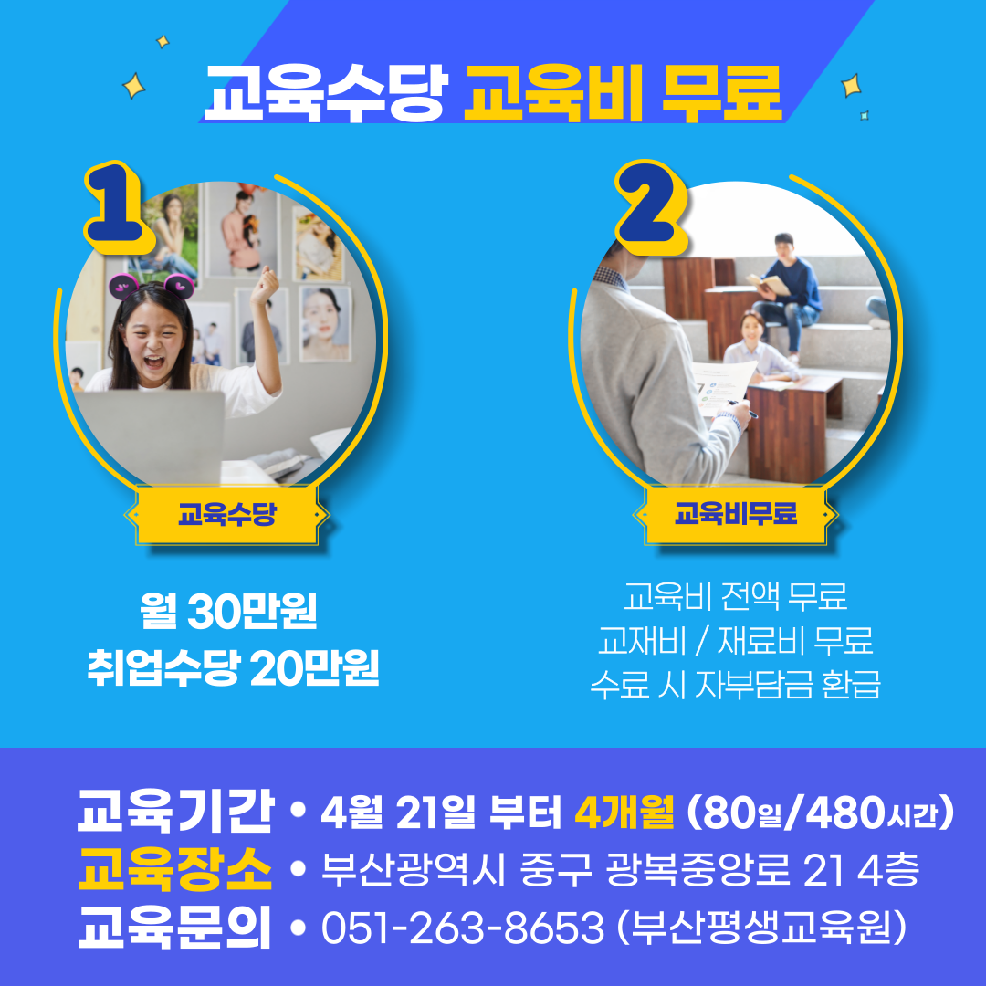 - 교육장소 : 부산 중구 광복중앙로 21, 4층 부산평생교육원